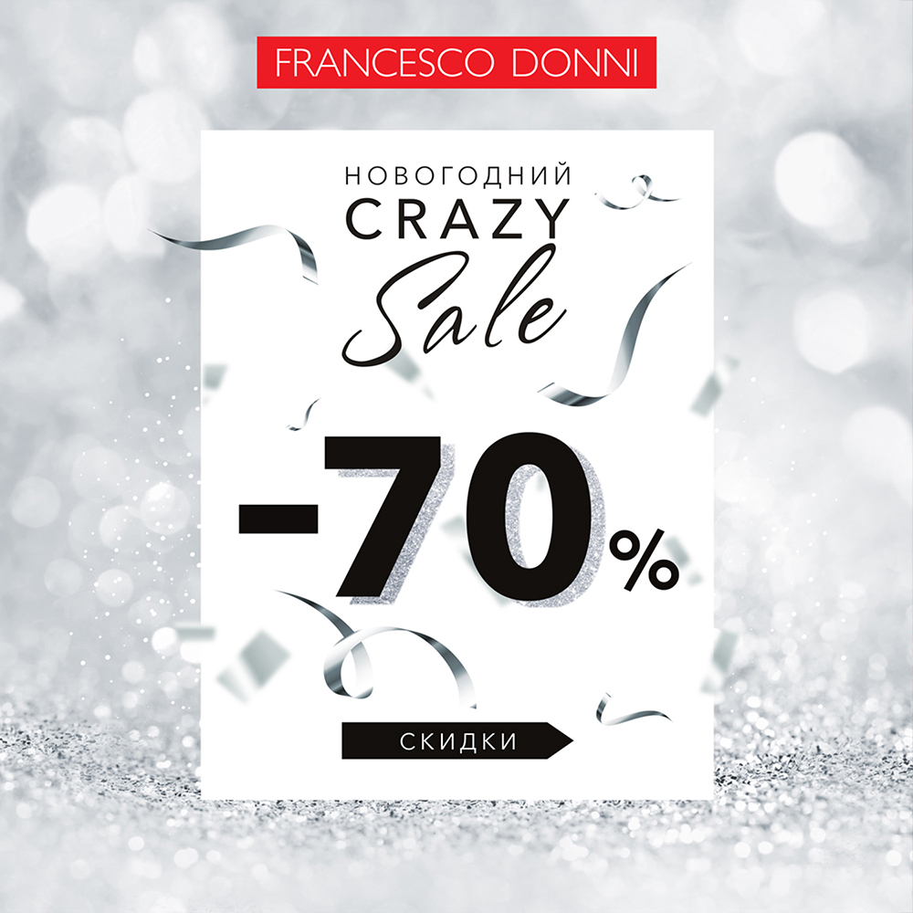 Во всех магазинах Francesco Donni стартовал Новогодний «Crazy Sale»! Скидка до 70%.